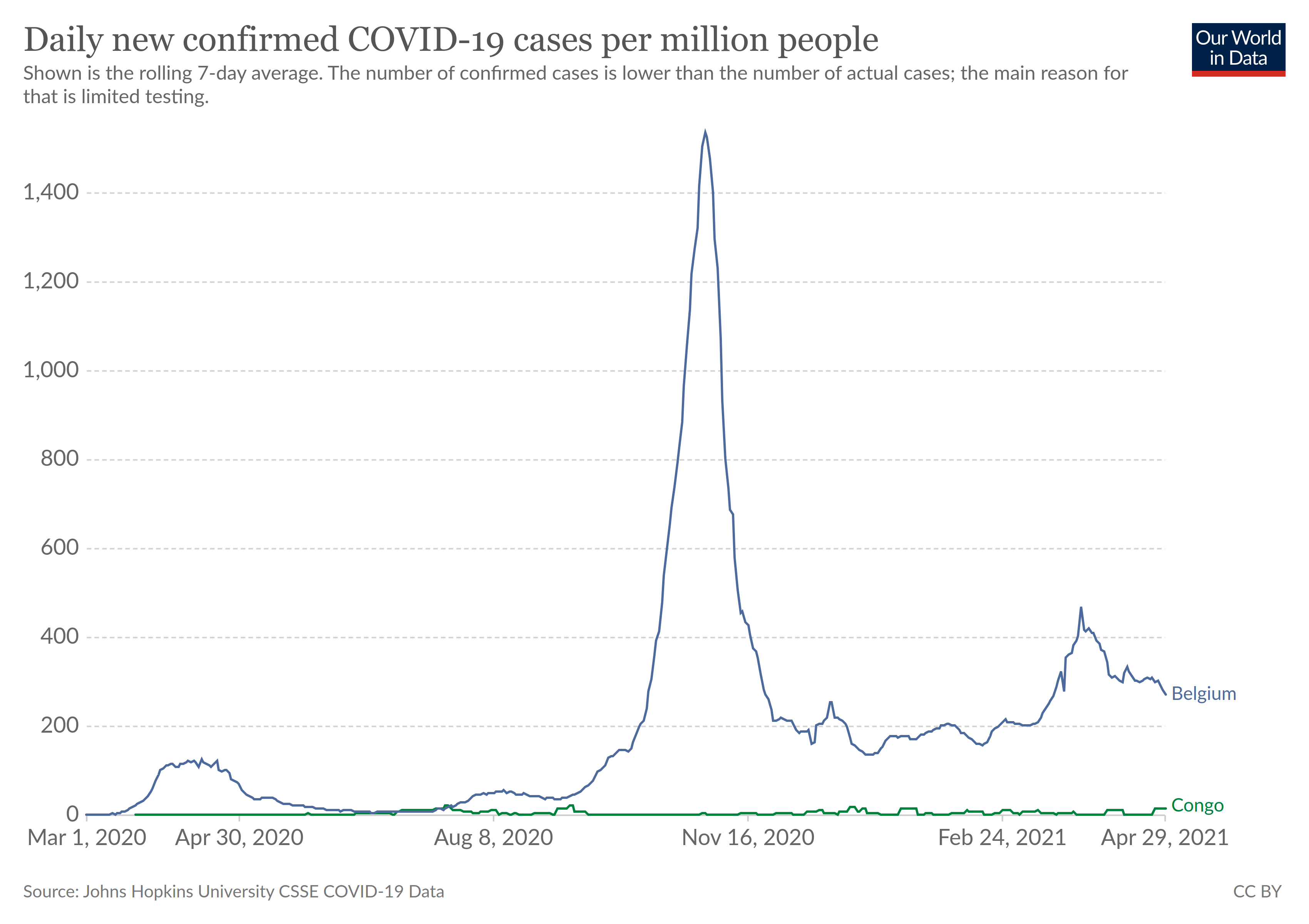Jij projecteert onze snowflake attitude waar "elke dode er een te veel is" op een gemeenschap waar dood gaan een beetje is zoals van sokken veranderen. Ze trekken zich dat ginder niet aan. Ze hebben daar serieuzer zorgen. Kijk, de Congolese cijfers in bijlage. In welke mate die cijfers "juist" zijn weet ik natuurlijk niet, maar die cijfers zijn wel een weergave van de perceptie van corona in Congo he. "de moeite niet om over te praten". Als je dus de overheid gelooft dat die cijfers juist zijn (en dat is goed mogelijk) dan is er geen corona probleem. De overheid kan dan ook niet zeggen dat iedereen zich daar moet vaccineren voor een probleem dat niet aanwezig is. En als je die cijfers niet gelooft, waarom zou je dan wel iets geloven over die vaccins ? Voeg daarbij inderdaad de catastrofale communicatie over Astra Zeneca zowel van overheden als van groeperingen, en de algemene attitude ginder tegen onze vormen van Voodoo, en ge begrijpt dat de gemiddelde Congolees niet echt een spuit wil tegen iets dat zelfs in het westen twijfelachtig wordt voorgesteld door allerlei overheden, waarover vanalles wordt verteld, dat van westerse fabrikanten komt waar ze toch niet veel van geloven, en tegen iets waar ze zich ginder geen zorgen over maken. Ik zal het zo zeggen: zou jij tegen een ziekte waar jij zelf geen schrik van hebt, en waar er zogezegd geen circulatie van is hier volgens uw eigen overheden, een Congolees recept willen nemen waarvan ze ginder zelf soms zeggen dat het misschien gevaarlijk is, niet werkt, en dergelijke meer ? Laatst gewijzigd door patrickve : 1 mei 2021 om 06:13. |