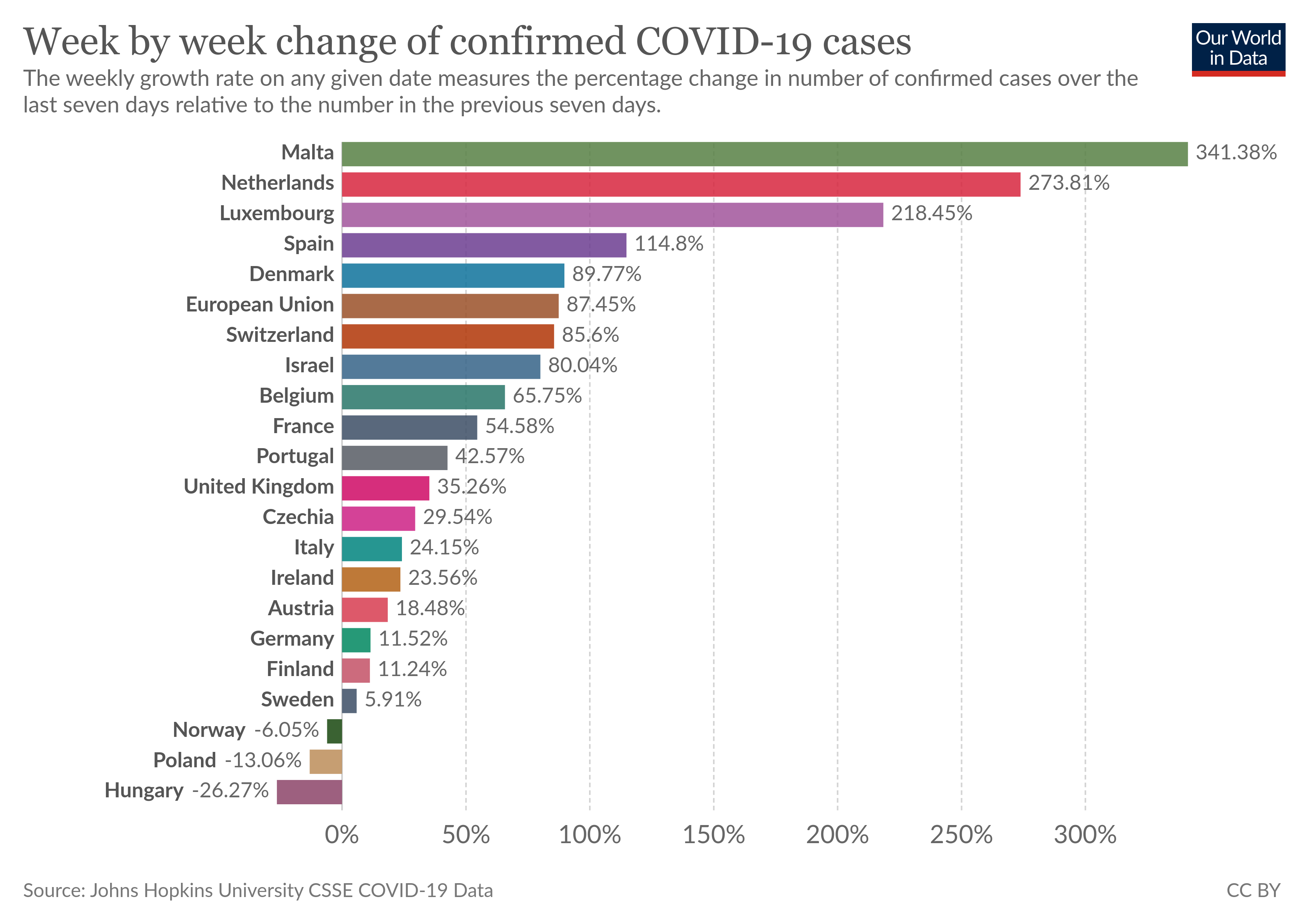 Ik geef het u op een blaadje, binnenkort gaan behalve besmettingen ook ziekhuisopnames en doden terug stijgen. Dat is dus volstrekt normaal want er zijn meer besmettingen met de besmettelijke delta. Dan gaan we weer grootse verklaringen horen over "de epidemie wint weer aan kracht", "we moeten voorzichtig blijven".
