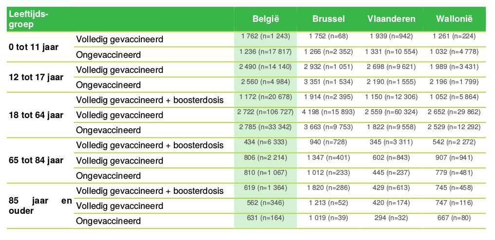 In dit rapport van sciensano he. p70 https://covid-19.sciensano.be/sites/..._report_NL.pdf Kijk naar Vlaanderen. Kijk naar: 12-17 jaar: bij de ongevaccineerden is de incidentie (dus per 100 000 ongevaccineerden, van 27 december tot 9 januari): 2190. Bij de gevaccineerden: 2698, dus MEER. Een gevaccineerde minderjarige heeft MEER KANS om besmet rond te lopen dan een ongevaccineerde. Bij de actieve bevolking: ongevaccineerden: 1822 ; bij de gevaccineerden: 2559 ! (toegegeven, bij de geboosten minder: 1150). Bij de gepensioneerden: ongevaccineerden: 445 ; gevaccineerden 602 (toegegeven, bij de geboosten 345). Daar zie je dat vaccinatie wel degelijk MEER incidentie oplevert, en dat is ook wat we vooral tijdens de delta golf zagen he. Dubbel gevaccineerden hebben MEER besmettingen dan ongevaccineerden. En we houden dus al rekening met hun aantallen, het zijn de incidenties, niet de absolute cijfers. We hebben dat al gezien in november, en we zien dat ook in andere landen. Gevaccineerden lopen er besmetter bij dan ongevaccineerden. |