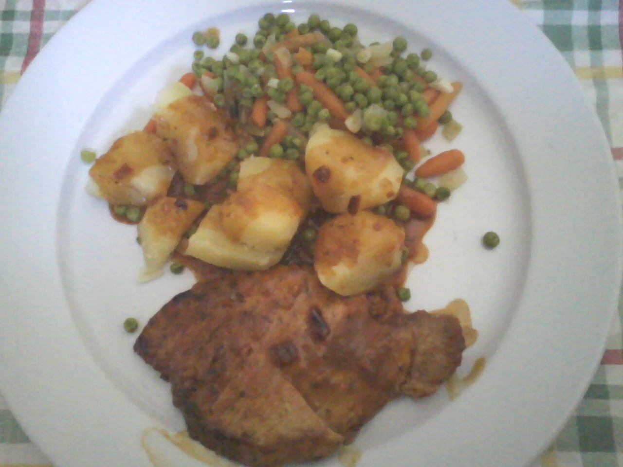 Eendenbout met Bohemer knoedels en rodekool. Best lekker... voor een zwembadcafetaria. Ah, de geneugten van een late aankomst in een stad die je niet kent, met een hotel aan de stadsrand...