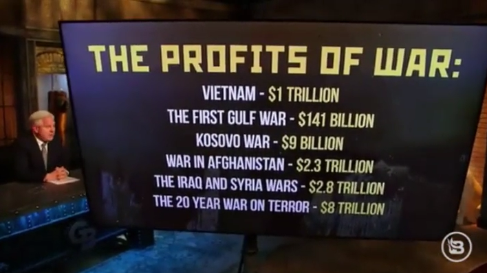 Journalist Glenn Beck over de winsten van het militair-industrieel complex, aangepast naar inflatie:
