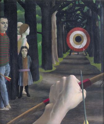 Ik heb een aardige tekening gemaakt van een boogschutster: een indiaanse die een pijl schiet op een ver doelwit aan de horizon aan de andere kant van een rivier. Ik herinner me dat ik vroeger graag een boogschutter tekende of een man op een paard of een schip. Die boogschutster doet me denken aan een schilderij van Pyke Koch. ![]() |