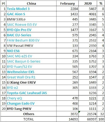 (Giga Shanghai was *29 jan - 10 februari gesloten: https://electrek.co/2020/02/08/coron...-shanghai-gov/ ) De Chinese verkoop van stekkerwagens daalde 65% YoY, de ganse automarkt zelfs 82%. Citaat: