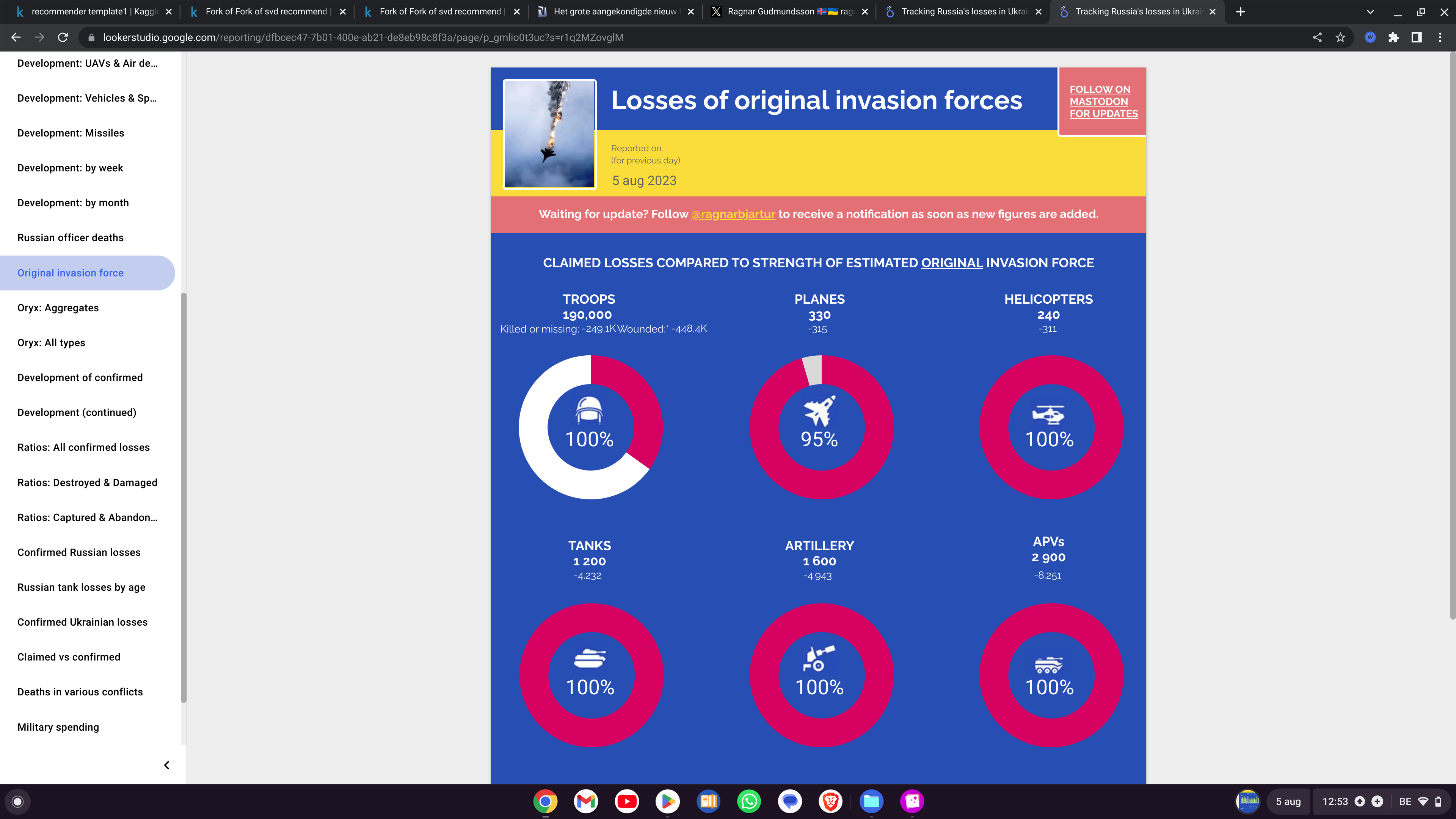 In de pakketlijsten zien we dat de totaalaantallen misschien wel minder zijn,maar wel steeds flexibeler,afhankelijk van de gebeurtenissen te velde... Een deel van de hulp,en dat zal steeds groter worden,bestaat ook uit het mee financieren van vers gekonstrueerde dingen.Zo bevatte het laatste pakket bijvoorbeeld een lijntje dat toonde dat Duitsland mee betaalde aan nog twee Slovaakse Suzana2 houwitzers(die overigens al geleverd zijn )....nog gaan volgen want de UKIES zijn er fan van...we gaan de komende maanden geleidelijk aan nog meer splinternieuw materiaal gaan zien... Met het vorige pakket waren al een aantal "mijnenruim-tanks" gekomen,met het huidge zitten er nog bij (mogelijk om slagveldverliezen te compenseren)....en Duitsland financiert ook mijnenploegen om aan T-72 tanks te sleutelen...... evident is het verschijnsel "mijnbestrijding" tegenwoordig nogal belangrijk.Zowat de ganse vorige reeks wapenpakketten aan pantservoertuigen die de Duitsers mee geleverd hebben ,zijn feitelijk nutteloos wegens de mijnenvelden.. De herhaalde vraag van Oekraine echter voor Taurus-kruisraketten (zeer vergelijkbaar met de Stormhawk/Scalp maar met nog groter bereik) kreeg ook herhaald een "nein"..... We weten wat dit betekent.. Net als vorige keren krijgt Rusland,dat natuurlijk hier heel goed van weet,weer de kans om hun leven te beteren...... Doen ze dat lang genoeg niet,dan krijgen de Russen ook Taurussen.....".Das Scharfe Ende" ervan welteverstaan.... Laatst gewijzigd door kelt : 5 augustus 2023 om 14:38. |