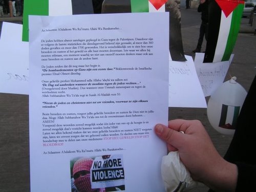 En als er die al zijn zijn ze zeker niet massaal. Waarom komen de zwarte in amerika niet op voor de grote mistoestanden in Afrika ? Het gaat allemaal om die religie, en dat klopt toch niet. Waarom hebben mensen die hier zijn geboren, hier zijn opgegroeid en hier zullen blijven zoveel affiniteit met mensen die ze van haar nog pluim kennen ?? De moslim wereld doet meer aan politiek dan de katholieke kerk... en het erge er aan is dat ze geen structuur hebben om de zaken wat te kanaliseren en vooral te kalmeren, iedereen loopt iedereen maar wat achterna! Dat zien we duidelijk hier in Antwerpen. Hamas weet het goed aan te pakken ze maken van de palestijnen weer een symbool, en de terreur groepen hebben weer een rede om snode plannen te smeden. Ik ben er zeker van dat Osama weer zit te genieten in zijn hol!!