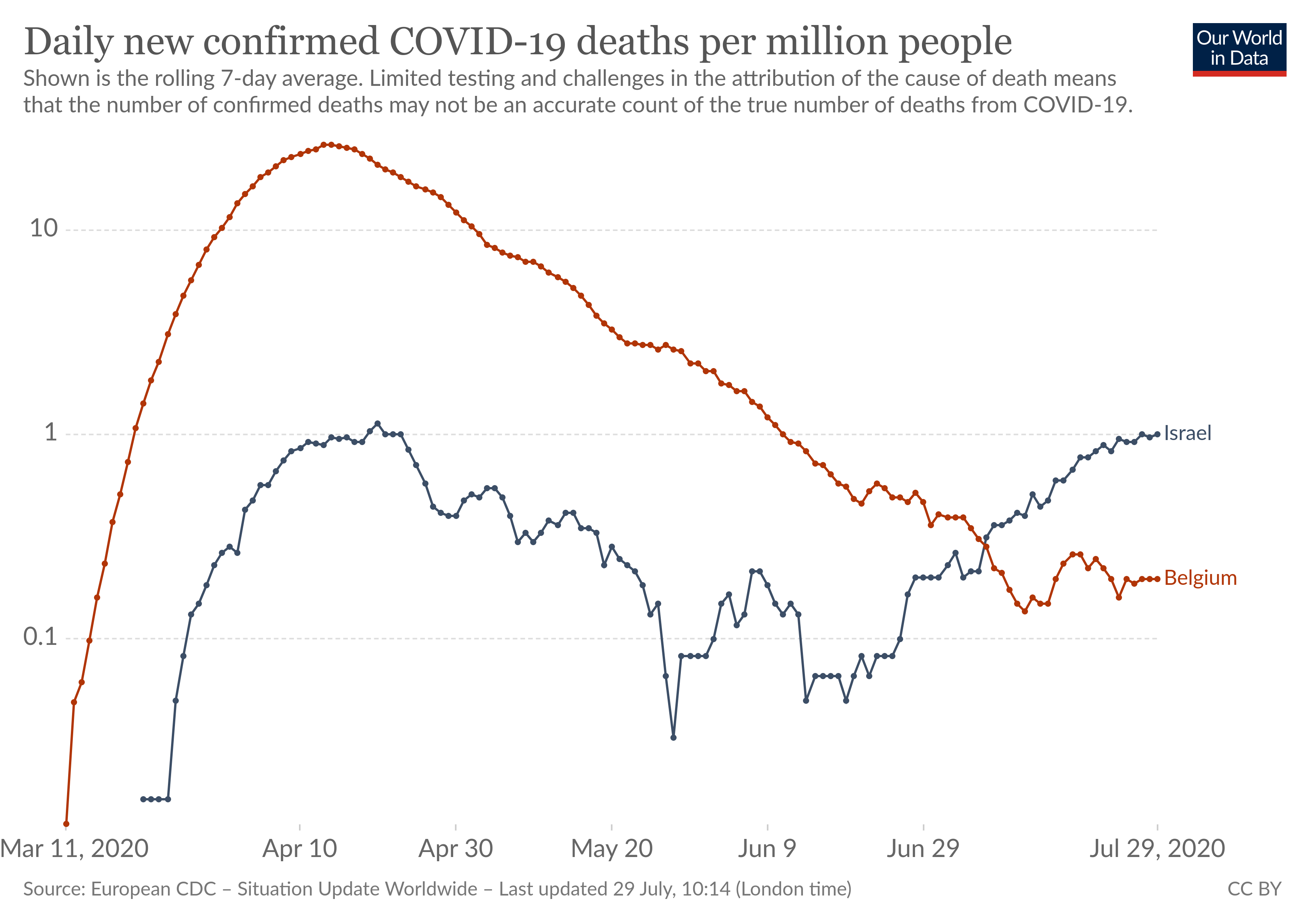 Met pieken(!) van 10 doden per dag kun je ook niet spreken van een probleem, daar wonen bijna evenveel mensen als in België.