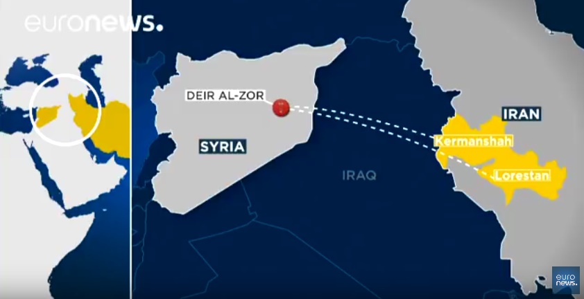 Dit is het traject. Vanuit Iran, over Irak, om doel te treffen in Deir-Ezzor.