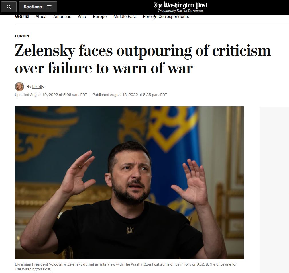 Zelensky faces outpouring of criticism over failure to warn of war |