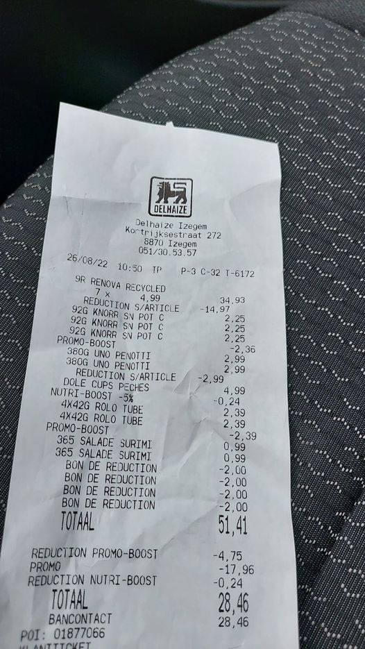 Geen enkel kasticket ziet bij mij lang daglicht. Even controleren of de hoeveelheden kloppen, of de kortingsbonnen werden meegeteld en of ze niet weer witte pompelmoezen als meloenen aanrekenden.. en dan gaat dat ticket de vuilbak in.
