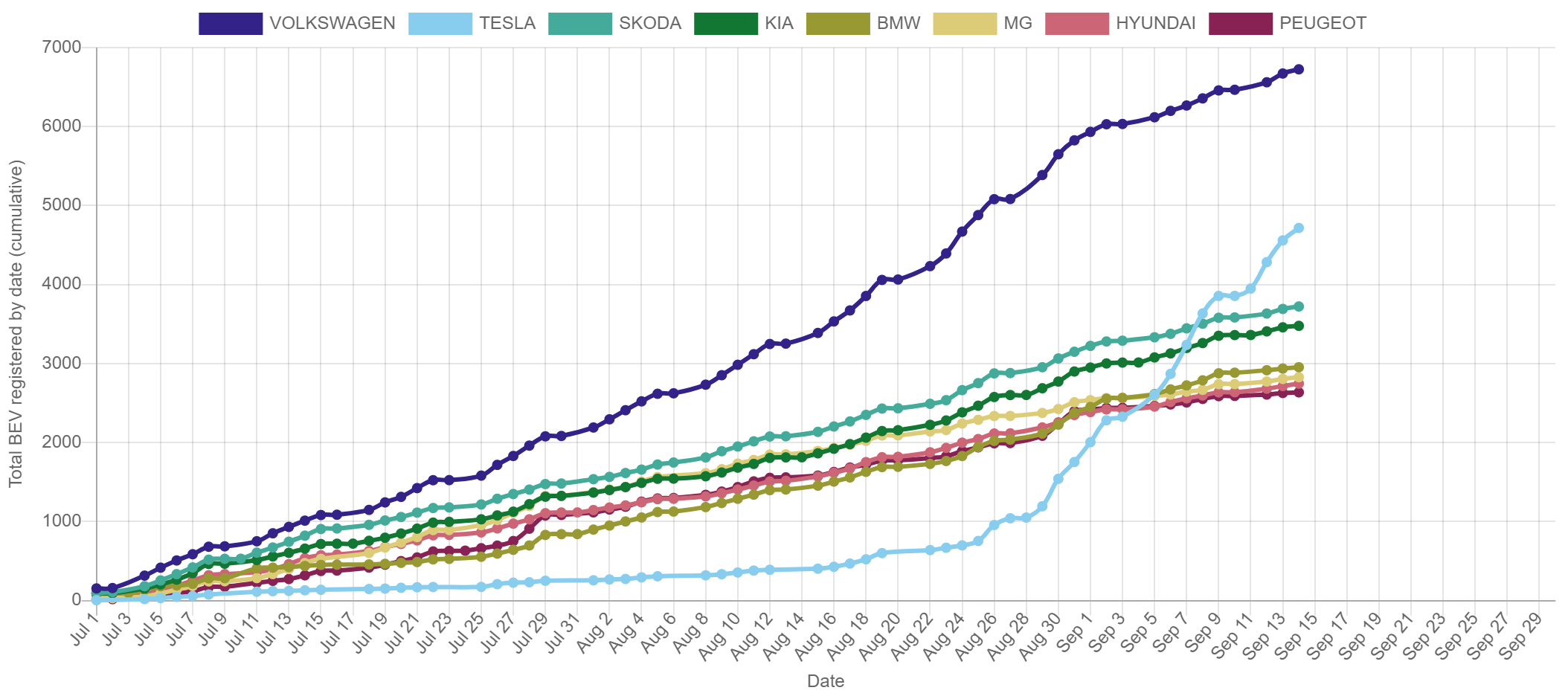 Tesla heeft nog ~1700 wagens achterstand op VW, nog 11 dagen tot kwartaaleinde.