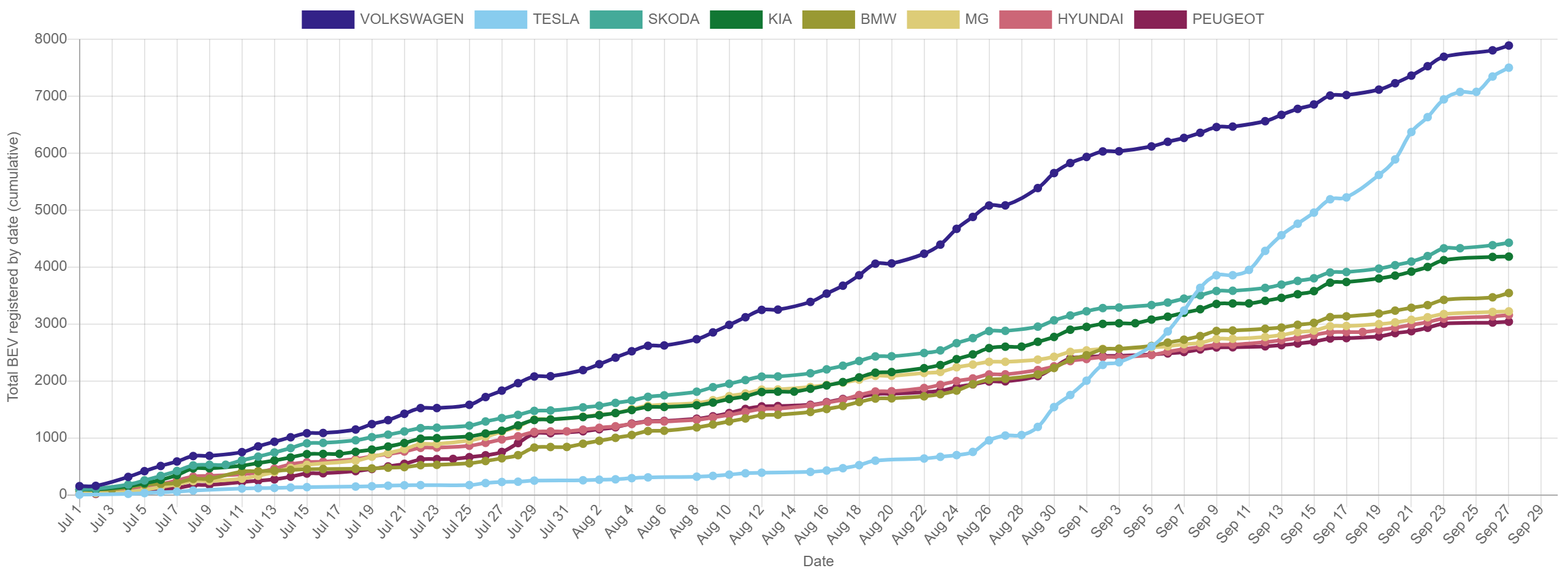 Tesla heeft nog ~1700 wagens achterstand op VW, nog 11 dagen tot kwartaaleinde.