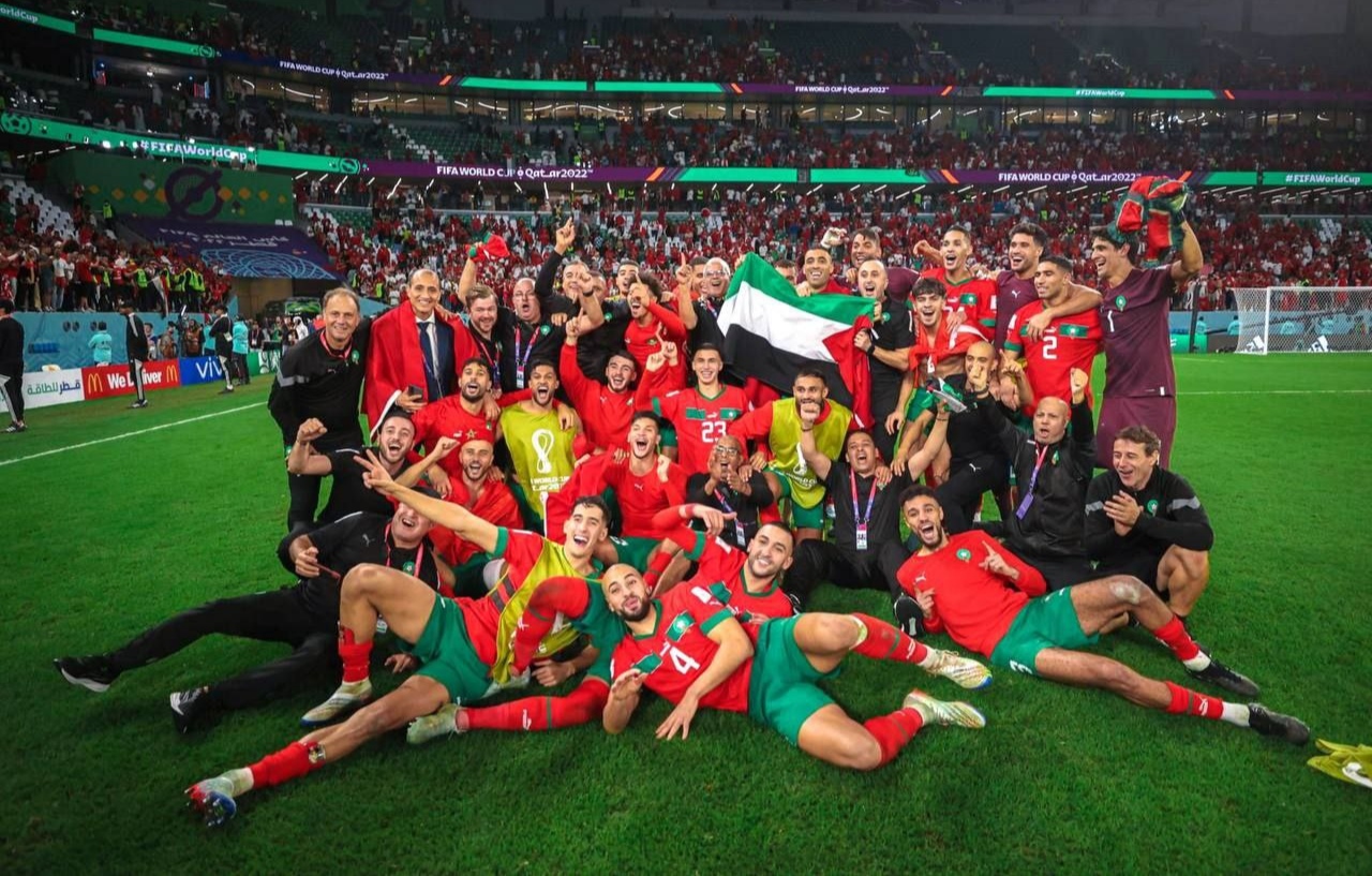 Marokko viert overwinning met Palestijnse vlag.