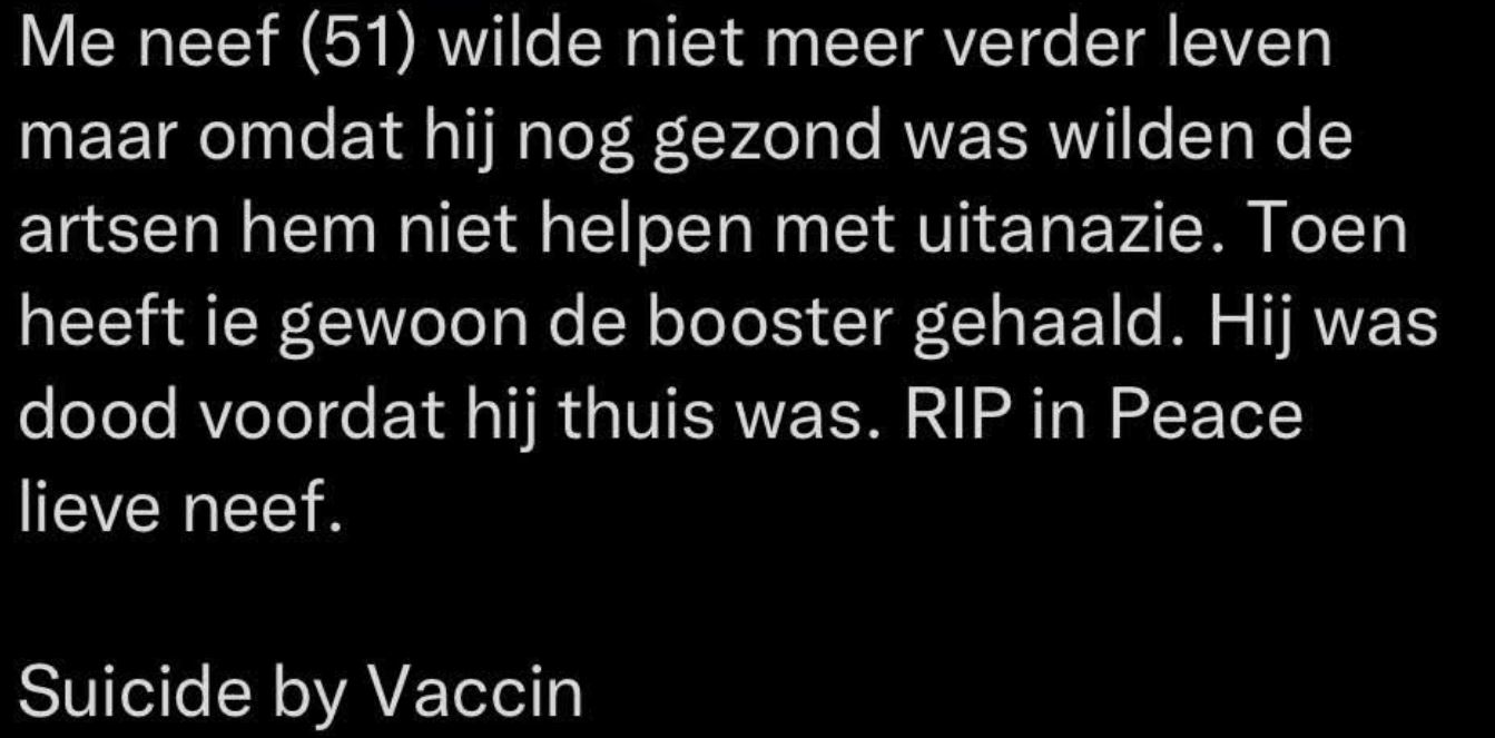 Maar sommige leugenmedia insinueren nu dat deze doden misschien te wijten zijn de hitte in de zomer? Een vertraging en wreed latere dood door de hitte dan? Pas als het vriest? ![]() Nu moeten ze enkel nog eens gaan zien of die doden gevaccineerd waren of niet om de doodsoorzaak als gevolg van de vaccinaties te kunnen uitsluiten. En dat is zeer gemakkelijk doordat elke gevaccineerde geregistreerd staat, nietwaar? Dus die nodige gegevens hebben ze al, dus nu enkel nog de vergelijking maken maar vergelijkingen maken zoals in de basisschool aangeleerd wordt, is blijkbaar te moeilijk voor de wetenschappelijke experten van sciensano?