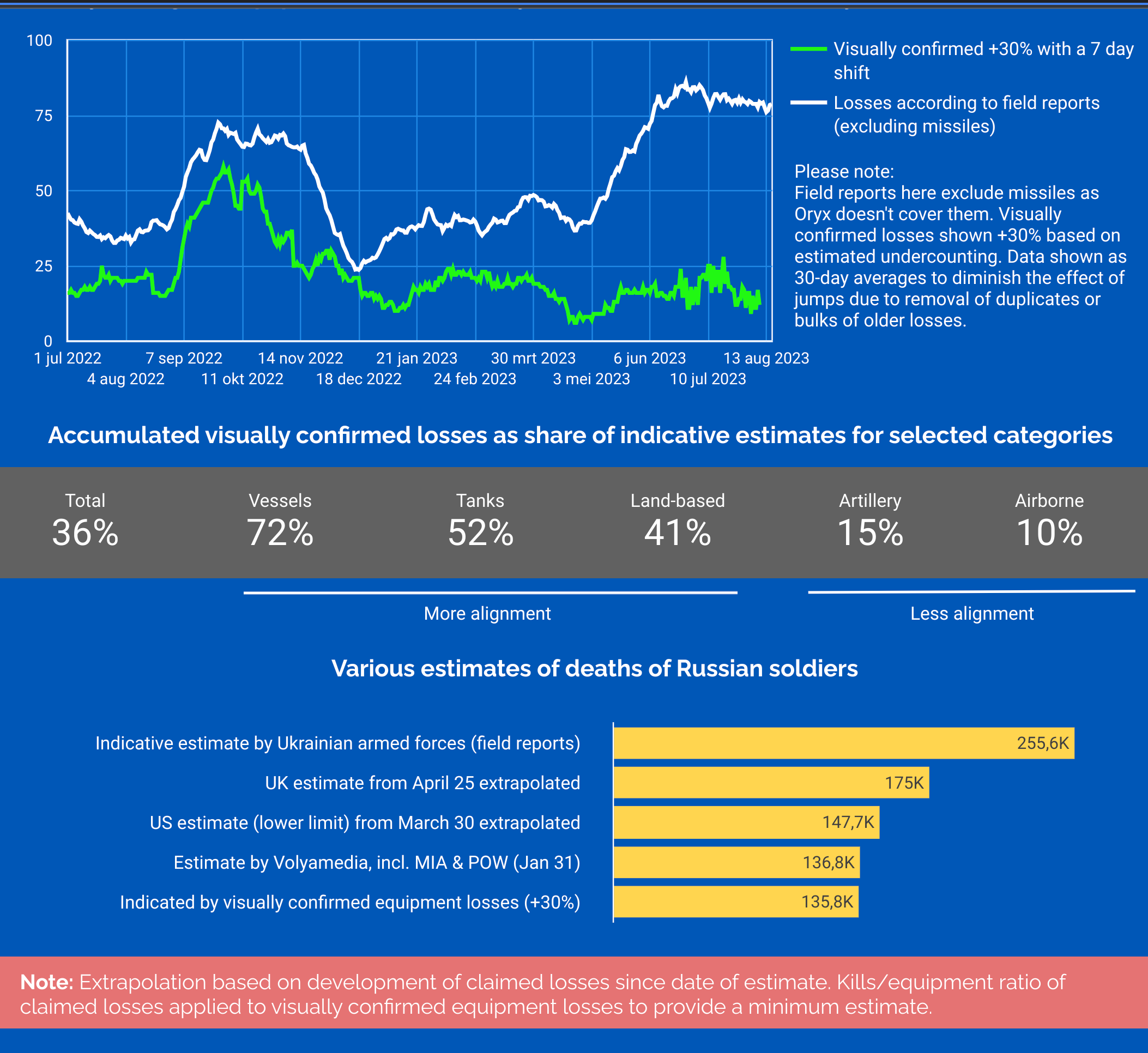 ![]() De UKR tellen vrolijk verder en luidens hun berekeningen zijn er al een kwart miljoen (250000) Russische militairen omgekomen ....