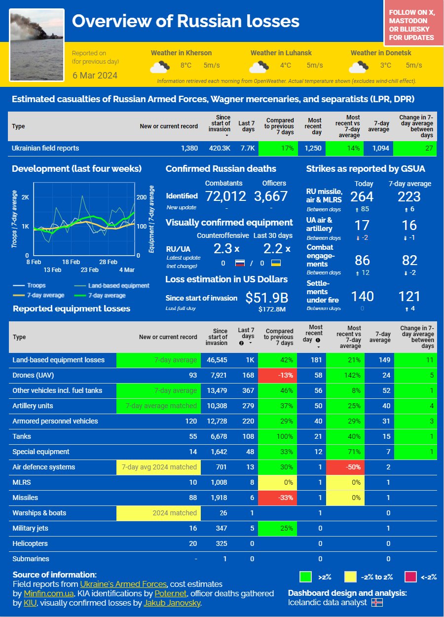 Per maand ja, volgens de Oekraiense openbaar aanklager. https://frontnews.eu/en/news/details/72423 U wilgeloven wat U graag gelooft. Laatst gewijzigd door tomm : 6 maart 2024 om 18:01. |