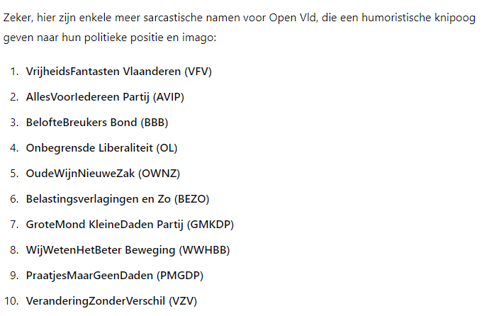 Het partijbestuur zal uitgebreid bejubeld geweest zijn, en Alexander De Croo zal nu aan het informeren zijn voor een Vlaamse regering, en een federale erbovenop. Enkel in de verwrongen fantasie van Het Oosten natuurlijk...