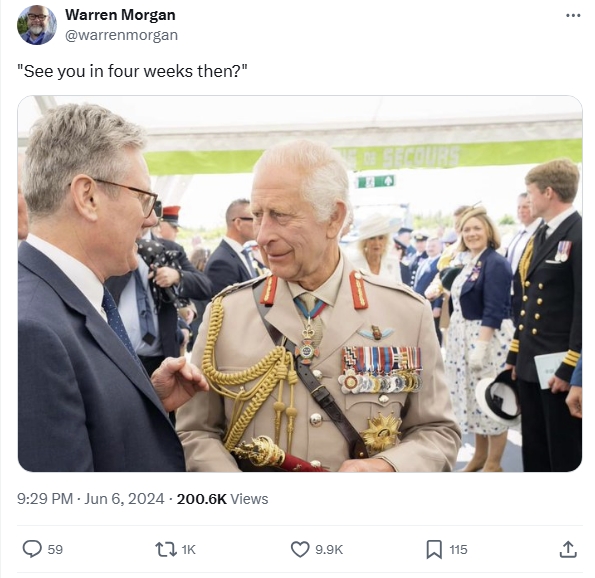 (Sunak verliet de D-day herdenking voorbarig om een Tv-interview niet te missen. Starmer was wat slimmer.)