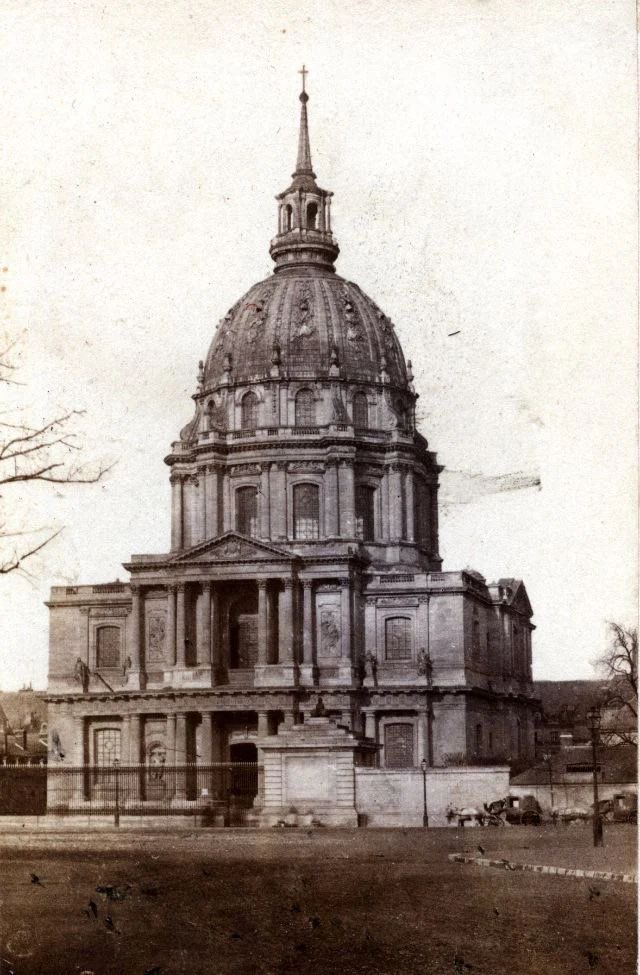 Kijk heel goed naar de foto, en vergelijk dan met het officiele verhaal van dit gebouw, kijk goed naar de modderige "weg" en paard en kar. En de strepen in de lucht, de witgewassen lucht... En hoe oud het er al uit ziet. https://en.wikipedia.org/wiki/Les_Invalides Verwacht je dan dat het er zo uitziet in 1860?