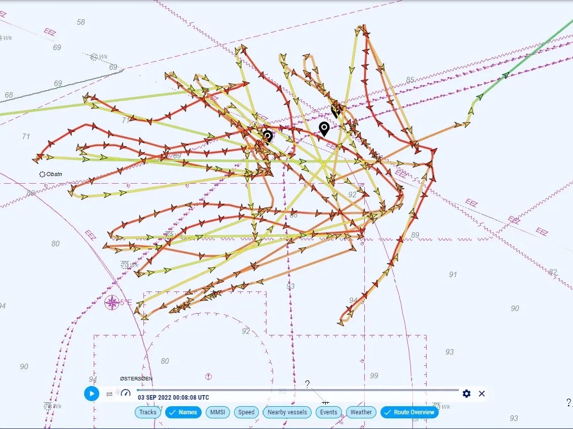 Diagram shows the track of the Minerva Julie in the sabotage area between September 6 and 13, alternately drifting (red) and running its engines (yellow). Black markers show the locations of the three pipe ruptures. From left to right, the first marker points to a NS1 pipe and is just inside Denmark’s EEZ maritime zone. The second marker points to one of the NS2 pipes and the final marker points to the second NS1 pipe. Both of those are in Sweden’s EEZ. Source: Marine Traffic via Oliver Alexander de journalist heeft een goeie verzameling van feiten... https://brian-whit.medium.com/nord-s...ar-311a615171d een drifting tanker The most notable of the Russian naval vessels was the SS-750 rescue ship which is well equipped for underwater operations. It carries a 55-tonne mini-submarine on its deck and has a crane for lowering it into the water. The mini-submarine is the Priz-class AS-26 submersible which has a crew of four and can carry up to 20 passengers (see video). It is designed to rescue trapped submariners from depths of up to 1,000 metres but it also has a manipulator arm capable of lifting 50kg.