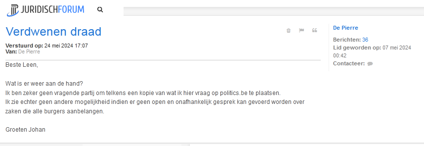 In deze draad zijn het aantal verdwenen post's over het dossier al jaren geleden aangeklaagd. Dit is vrij recent. Een vraag om de conclusies van beide partijen en het vonnis te posten. Doofpot acties van het laagste niveau. Waar heeft men schrik van? Ik weet het, jij weet het en alle lezers hier weten het ook. Merk op dat ik gewoon in mijn eigen naam vragen stel en antwoord. ![]() Citaat: