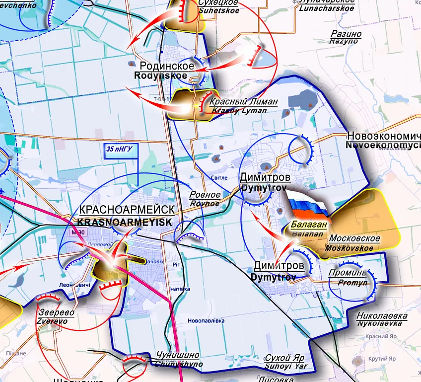 Vandaag hebben de Russen de helft van de - net zoals Bachmut - oninneembare stad Pokrovsk veroverd. De stad van 60.000 inwoners fungeerde als een logistiek centrum aan de frontlinie en was een waar bastion. Pokrovsk grenst aan Myrnohrad, (een andere stad van 50.000 inwoners), en behoort tot de laatste verdedigingslinie van het AFU. Door de hoogbouw en het stadscentrum in te nemen bezetten ze nu de belangrijskte delen van deze stad. Ook Myrnohrad staat op het punt van onder de voet gelopen te worden.