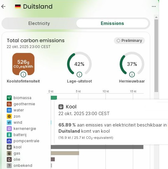 ik dacht gisteren, ik ga effe kijken hoeveel steen/bruinkool de Duitsers aan het opstoken zijn aan CO2 uitstoot: zo'n 17.000 ton/uur en samen met gas zo'n 22.000 ton/uur....