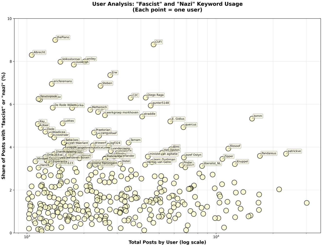 ik weet niet of het kan, maar het zou leuk zijn om te zien hoe vaak bepaalde personen de termen "fascist" en "nazi" gebruiken.