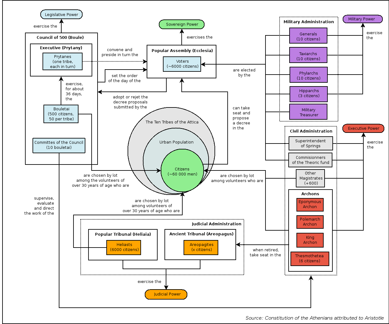 Over Athene: wil je dan ook sommige functies via een loterij bepalen zoals de Atheners? En nu we toch over die ouwe Grieken bezig zijn, in de Attische Zeebond waren wel niet alle stadstaten evenwaardig. Athene heeft zelfs ooit de gezamenlijke kas geplunderd en gebruikt voor stadsverfraaiing. Zo'n goed voorbeeld is dat nu toch ook weer niet. Ik denk dat Kant en Rousseau veel interessantere dingen hebben geschreven over confederaties van stadstaatrepublieken of communes.