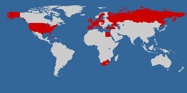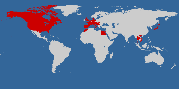 ![]() Nederland, België, Luxemburg, UK, Frankrijk, Spanje, Duitsland, Zwitserland, Oostenrijk, Hongarije, Kroatië, Servië, Montenegro, Bulgarije, Tanzania, Thailand, Maleisië, Singapore, Australië, Nieuw-Zeeland