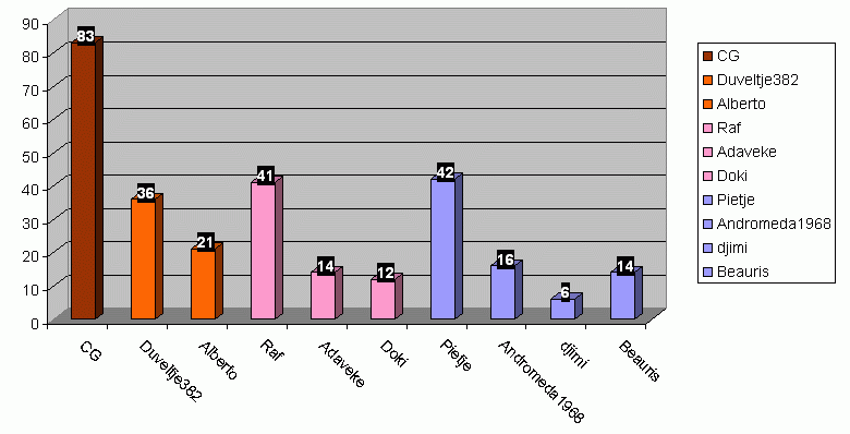 Aantal bijdragen in deze draad per persoon. Sorry voor wie ik vergeten ben.