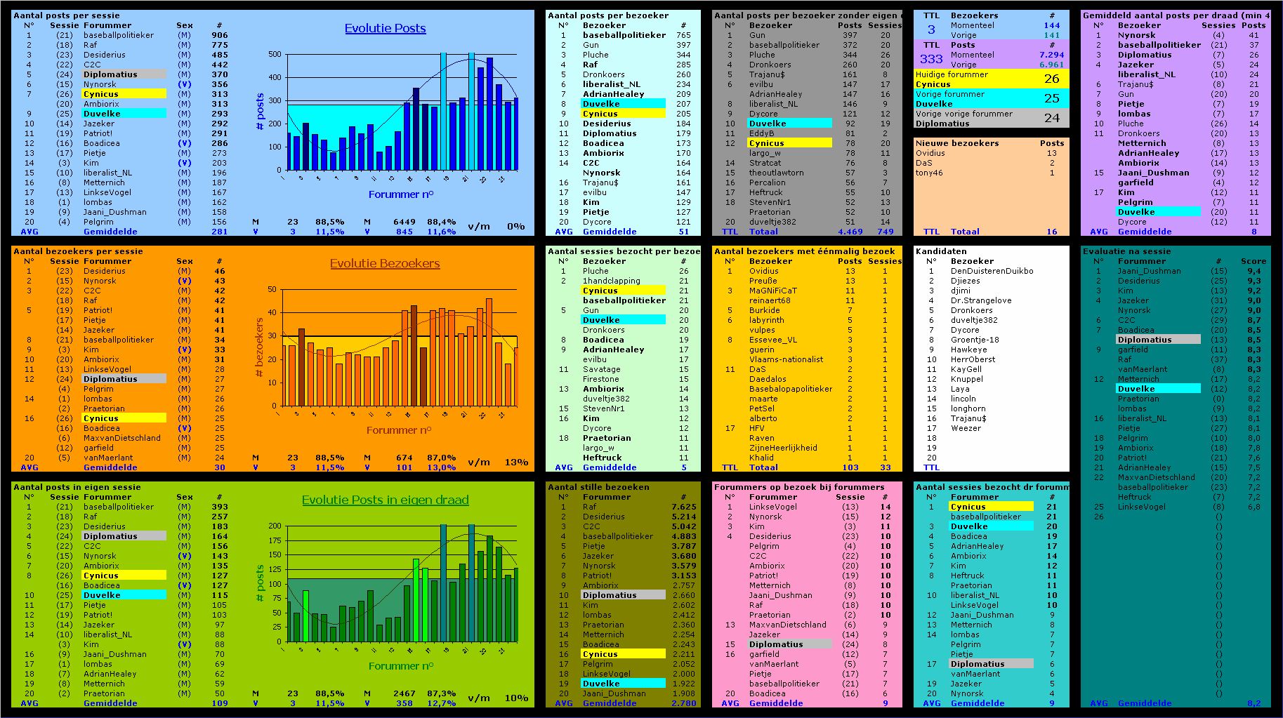 - Aantal forummers op bezoek: Het effectieve aantal sessies waar de bewuste forummer een bericht heeft achter gelaten