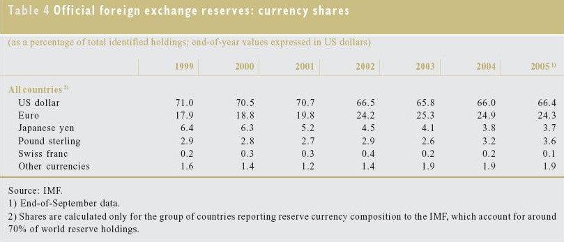 ![]() De euro is onmiskenbaar bezig aan een opmars als reservemunt.