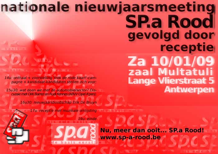 Het vierpunten plan van "trek de rode kaart" is niet bepaald communistisch, maar uiterst realistisch. Overigens daag ik eenieder uit om ergens uit een tekst die wij verspreidden te halen dat Sp.a-Rood communistisch is. Voor de mensen die niet erop uit zijn om geruchten te verspreiden maar oprecht geïnteresseerd zijn: Ik vind de beste voorstelling van Sp.a-Rood degene die Antoon Stessels op zijn weblog zette. Hij is trouwens ook een kandidaat Sp.a-Rood parlementslid in Antwerpen. Hij beschreef Sp.a-Rood als een beweging die opkijkt naar de tijden toen de Sp.a één en ander realiseerde op gebied van sociale zekerheid, en woog op een linkse politiek IN DE REGERING. Dat is van verre geen communisme, maar komt wel overeen met wat het grote gros van SP.a-stemmers er toe aanzet om nog op deze partij te stemmen: dat zij ooit woog op de besluitvorming, en dat dit resultaat opleverde voor de werkende mensen. Ik kan mij daar VOLLEDIG bij aansluiten: het gaat niet om de poppetjes, zelf niet om onze poppetjes maar om de resultaten. En we staan dus nu NERGENS. |