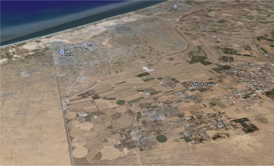 Als je "Rafa" intipt op Google Earth, krijg je een zicht op de samenstelling van het landschap in Gaza en de aangrenzende strook in handen van Israël. Interessant!