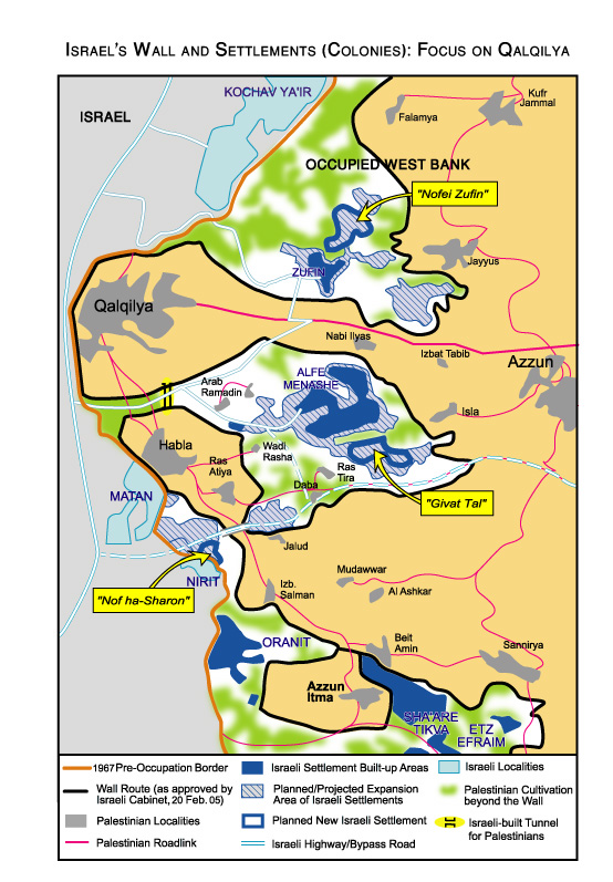 2. De waterbronnen aan de Jordaan overdragen aan de Palestijnen. 3. Het afbreken van de muur. 4. Normale handel tussen de Israëlische staat en de Palestijnse Gebieden toelaten. 5. De Palestijnse vluchtelingen het recht geven op de terugkeer naar hun huizen. 6. Financiële en logistieke steun geven aan de heropbouw van vernielde woningen en infrastructuur. 7. Afbouw van het IDF tot normale proporties voor een land van 7 miljoen inwoners. 8. De beslissingen van de Palestijnse Autoteit en de geldigheid van de democratische Palestijnse verkiezingen niet in twijfel trekken. Gecombineerd met internationale vredestroepen zou dit een klimaat kunnen creëren waarin stap voor stap beide politieke entiteiten samengroeien tot één Palestijnse staat met religieuze vrijheid.