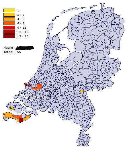 ![]() Ik hoor bij een niet erg succesvolle familie: 48 in Nederland en 2 in België/Vlaanderen.