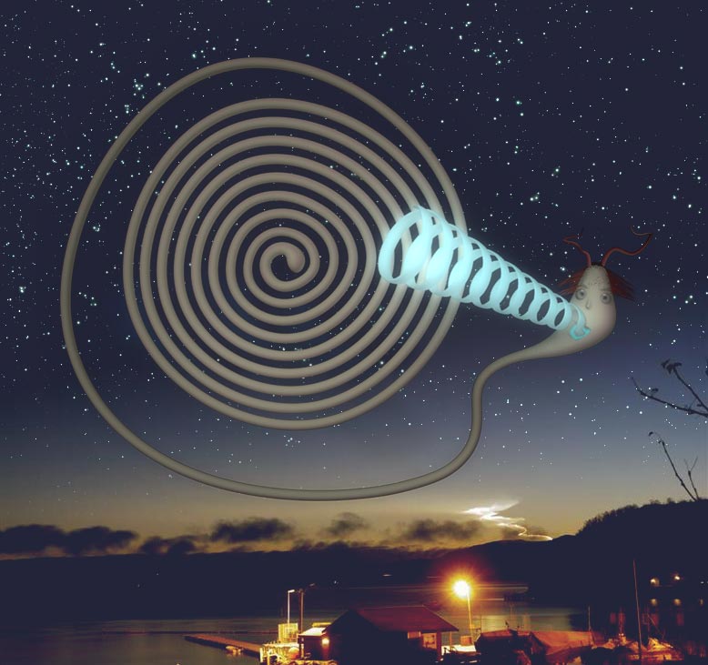 De trechter zeg maar, die van links ontspringt...veel te mooi, geleidelijk, typisch photoshop, en de resolutie is beter dan al de rest op de foto. Kan in werkelijkheid niet.