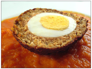 Ik vind dat vies. Gehakt, ja, eitje, ja, een gefrituurde bal gehakt waarin dat ei zo poreus is geworden en het gehakt zo hard van de buitenkant dat je je grootvaders zwaard moet bovenhalen. Bah... Akkebah!