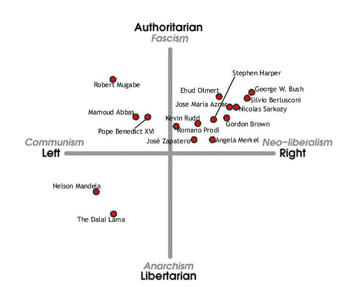 Social Libertarian/Authoritarian: -4.41 Ik zou nochtans de perfecte dictator zijn Laatst gewijzigd door Scherven A. Mok : 13 maart 2011 om 06:59. |