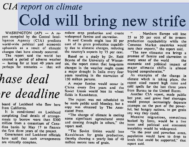 "The threat of a new ice age must now stand alongside nuclear war as a likely source of wholesale death and misery for mankind” Nigel Calder 1974, editor, New Scientist magazine, in an article in International Wildlife Magazine