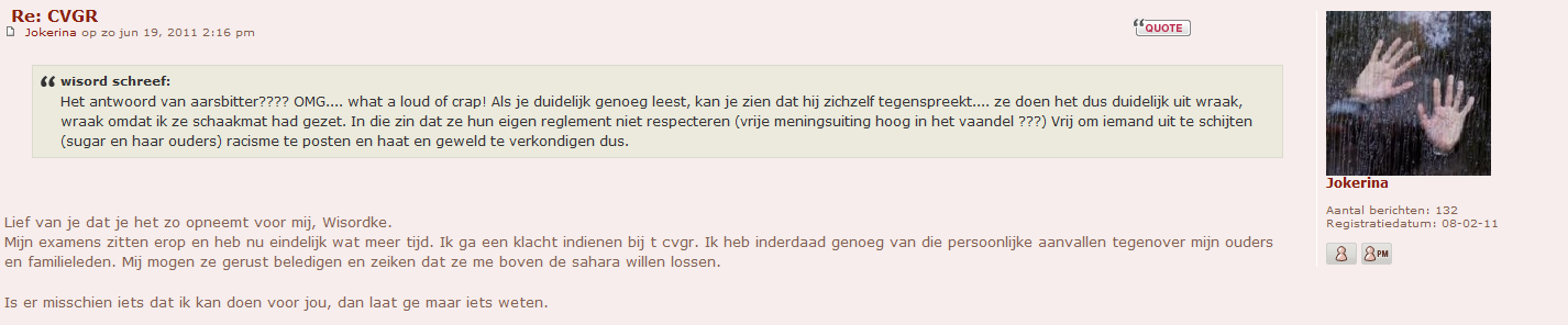 ![]() Suqar is blijkbaar ook bij het CGKR gaan bleiten: