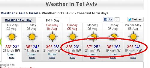 Maar u kan zelf gaan zien --> Tel Aviv-Yaffo Weather Forecast En zelfs voor een hele maand --> Tel Aviv-Yaffo - 1 month Citaat: