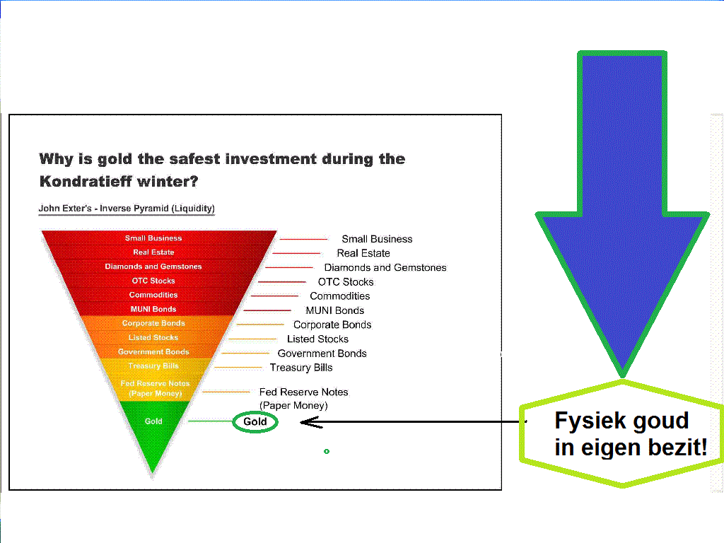 Wij zijn geen toekomstvoorspellers. Wij vertellen een/het goudverhaal, gebaseerd op decennia onderzoek en ervaring. We merken wel dat mensen die het goudverhaal gradueel beter verstaan, hun wereld-visie meestal ook gelijk veranderen. Het goudverhaal is allesomvattend, zo blijkt, niet enkel financiëel ! : Het aan gang zijnde 'proces ' heeft zijn effect op politiek, milieu, kunst..... Wat jij wil is de plot van de Matrix ff bekijken en zo vlug wat conclusies trekken over de film. Zo werkt dat niet. |
