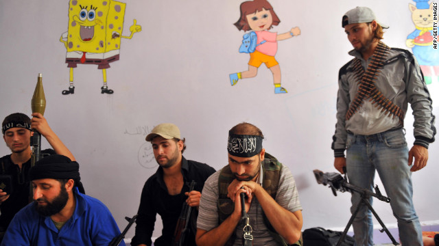 ![]() De terroristenbendes verstoppen zich zoals bijvoorbeeld (foto hieronder) in deze lagere school in Aleppo.