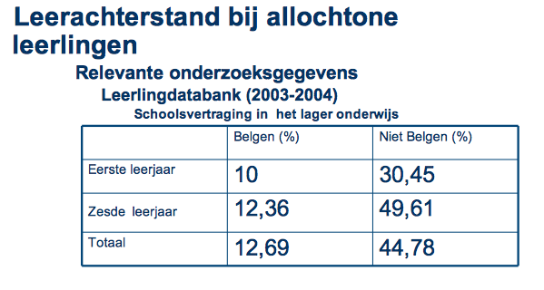In het onderzoek waarnaar "de powerpoint" van de kinderrechtencoalitie verwijst, kan je lezen wat ik je in deze post (die je natuurlijk toevallig negeerde) ook al kon lezen: die 36% gaat over 2,5-jarigen en dat gaat dus over instapklasje (vroeger peuterklasjes genoemd). Bij 4-jarigen is die niet participatie nog maar 1% en dat aantal is zo klein dat in de studie opgemerkt wordt dat verdere analyse naar subgroepen zelfs niet mogelijk is. Jouw initiële bewering als zou 36% van de allochtone kinderen niet naar de kleuterklas gaan is dus je reinste onzin.En al de rest dat je er nu bij sleurt om die flater te camoufleren, verandert daar niets aan. Dat allochtonen slechter presteren op school - en dat zich dat al in de kleuterschool manifesteert - is echt geen nieuws voor mij hoor. Maar dat is dus niet terug te brengen op het feit dat een groot aantal niet naar de kleuterschool gaan zoals jij blijkbaar dacht. En het is ook niet de enige groep waar dat probleem zich stelt. Maar die andere groepen bestaan volgens jullie niet natuurlijk. |