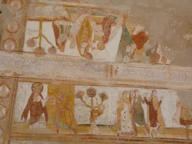 Dit is een fresco op het plafond van de abdij van St. Savin, gefotografeerd met de losse pols, zonder statief en met de nek 90° geplooid om recht omhoog te kunnen mikken (18 meter hoogte). Toch wel een goed resultaat denk ik dan. (Maar hier ook weer 4/5de moeten verkleinen voor de upload en dat vermindert de scherpte van de lijnen echt wel beduidend.
