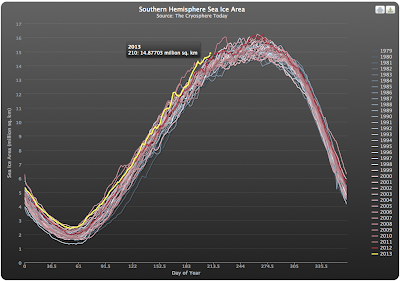 Juist. Maar daarvoor toon je enkel de plotjes van zee-ijs, om de lichte stijging van het zuidelijk zee-ijs als compensatie kunnen aan te geven voor de noordelijke afname.