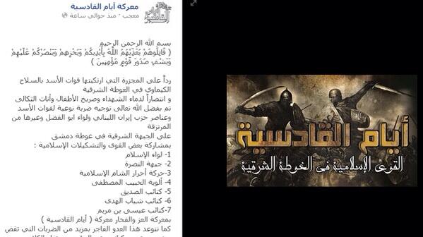 Katā'ib 'Īsa bin Maryam (Jezus Zoon van Maria) en Katā'ib Shabāb al-Hada, christelijke milities slaan de handen in elkaar met islamitische rebellen ter vergelding van de chemische aanvallen.