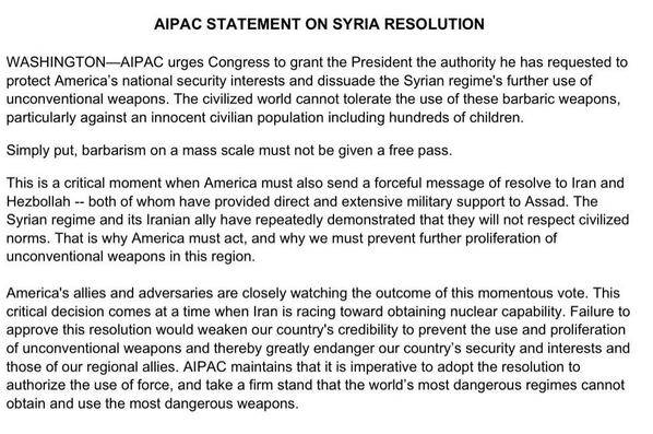 AIPAC wil dus dat de VS Assad aanvallen en verzwakken. Nu geef je dus toe dat de zionisten (zionistischer dan AIPAC maken ze ze niet) en uw eigen al-quaida op dit moment aan hetzelfde zeil trekken. Een mooier bewijs voor mijn stelling van een monsterverbond had ik zelf niet kunnen bedenken, bedankt Salah! Laatst gewijzigd door tomm : 4 september 2013 om 00:03. |