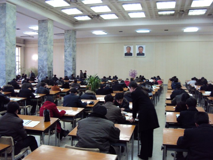Je moet weten dat Noord-Koreanen voor wat de kwestie met Zuid-Korea betreft één visie met de zeer harde hand opgelegd krijgen. Zuid-Korea was een wingewest voor Amerika na de Tweede Wereldoorlog en de scheidingslijn werd volstrekt willekeurig getrokken. Nadat Amerika acties ondernam op hun grondgebied (de DPRK-versie van het begin van de Korea-oorlog) mondde dit uit in een broedertwist. Het enige echte doel is om een federatie tussen Noord en Zuid tot stand te brengen die gericht is op de juche-gedachte en die beide visies met elkaar moet verzoenen. De leer in de DPRK is ook dat vele Zuid-Koreanen niet weigerachtig staan ten opzichte van de kerngedachten van juche (moeilijk te vinden trouwens, maar zeker niet geheel onwaar). Onze (vrouwelijke) gids wist me ook fijntjes te vertellen dat Noord en Zuid wel samen moesten gaan ooit, omdat bij de scheiding alle knappe vrouwen in het Noorden vastzaten en alle knappe mannen in het Zuiden. Onze (mannelijke) militaire gids moest daar maar zuur mee lachen.